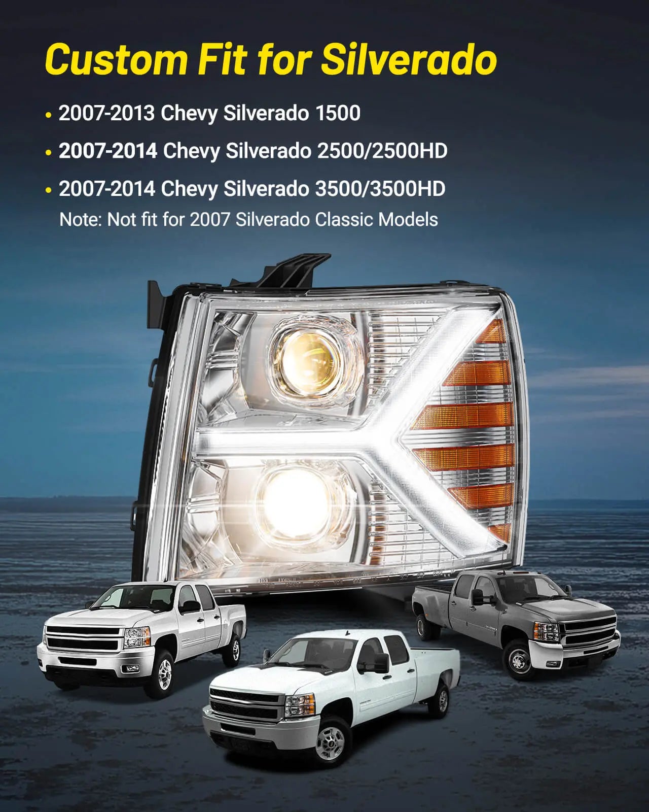 For 2007-2013 Chevy Silverado LED Headlight Assembly Pair