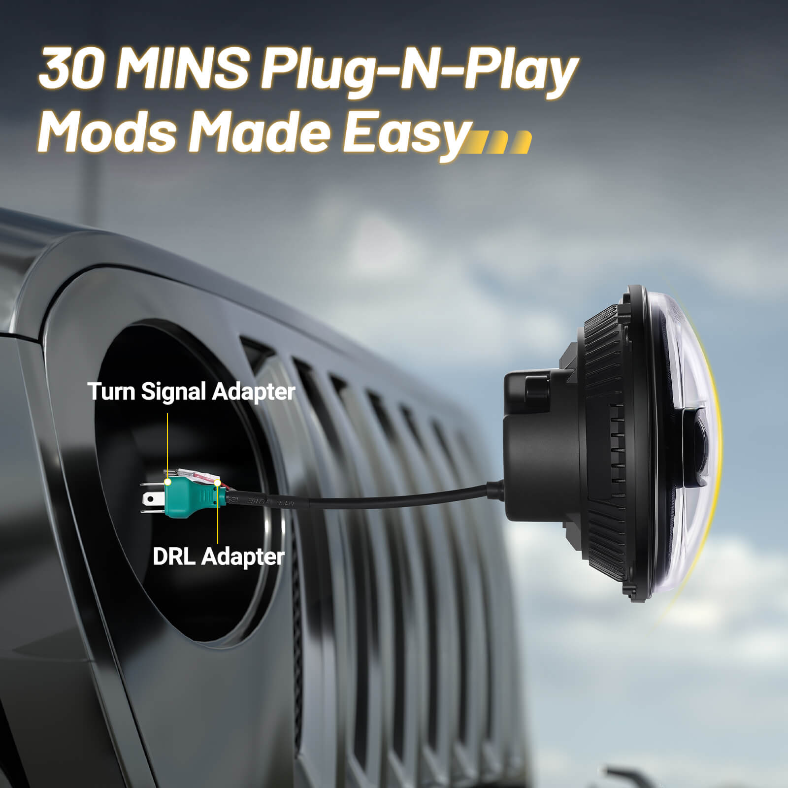 Plug&Play. Compatible with most vehicles with 7 inch led headlights(some need to do some modification),replacement for #6014, 6015, 6016, H6024 and Par 56 headlamps.