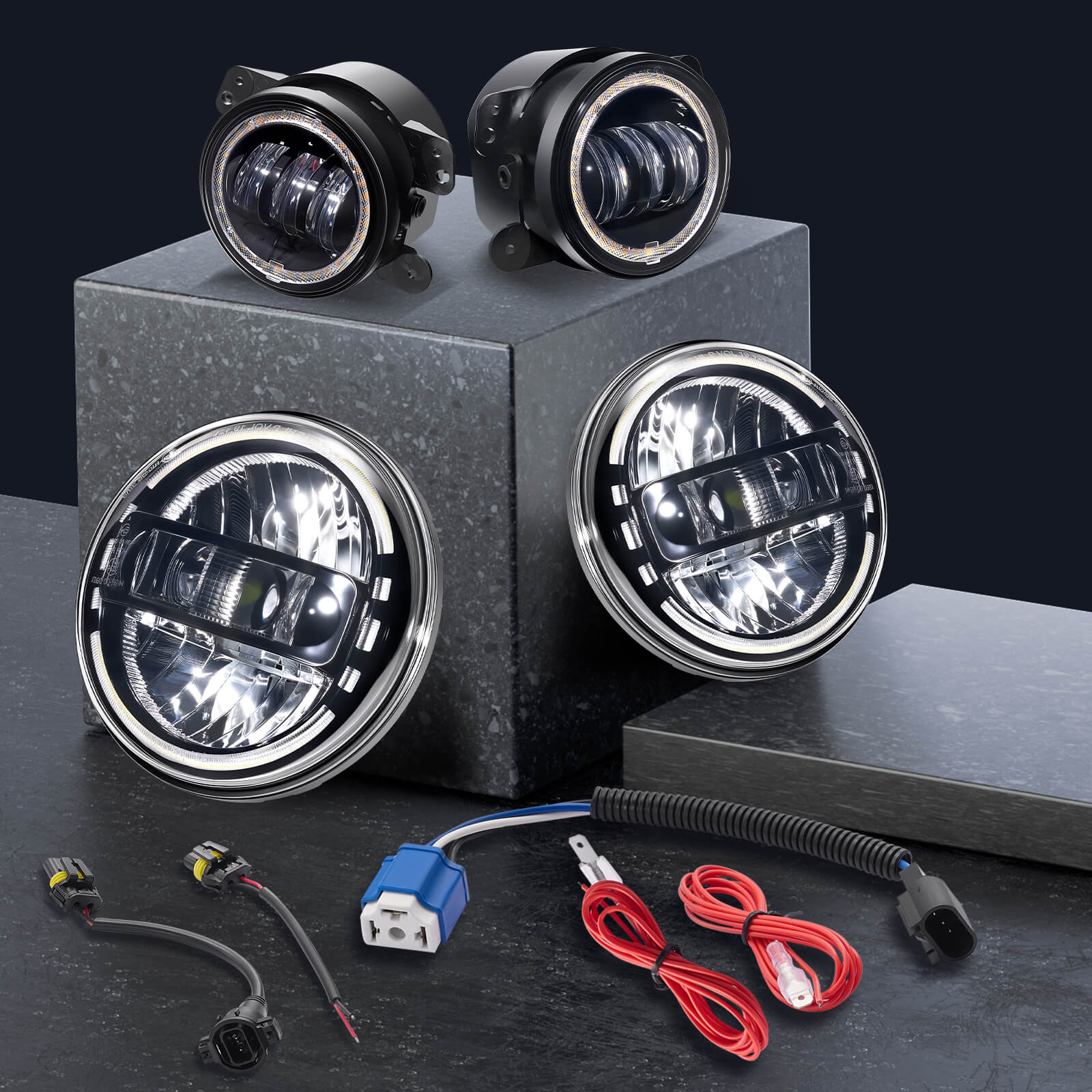 1x Pair Headlights( Driver & Passenger Side) 1x Pair Four-inch Fog Lights |