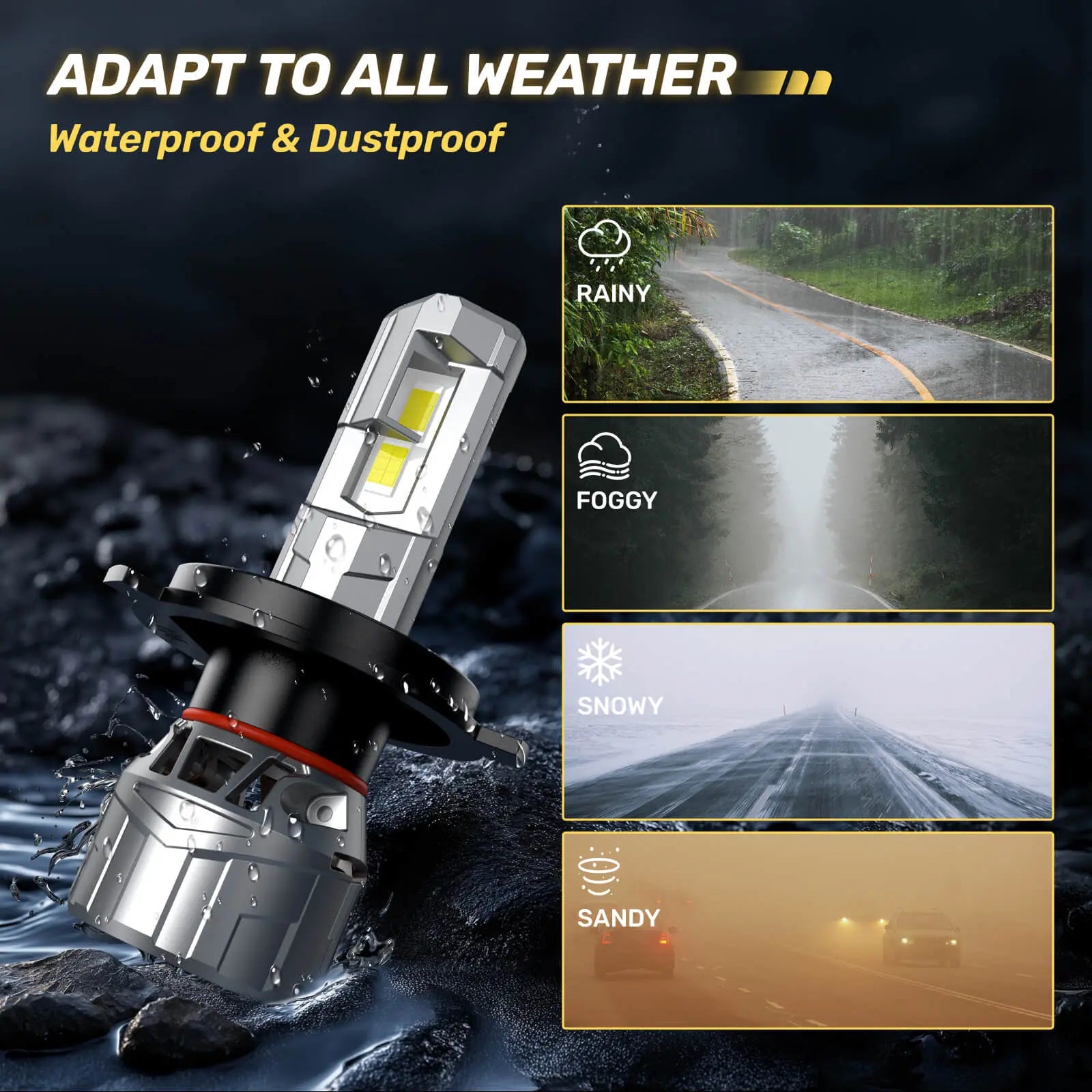 The P2 Series boasts an IP68 waterproof rating, ensuring reliable performance in rainy, snowy, or foggy conditions. Drive with peace of mind, knowing your 130W high power H4/9003/HB2 LED bulbs can handle any weather.