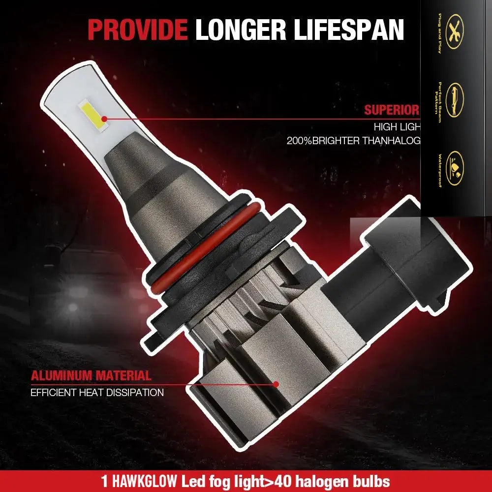 LF1 9006/HB4 LED Fog Light Bulbs 6500K 5500LM White 2Pcs | Hawkglow