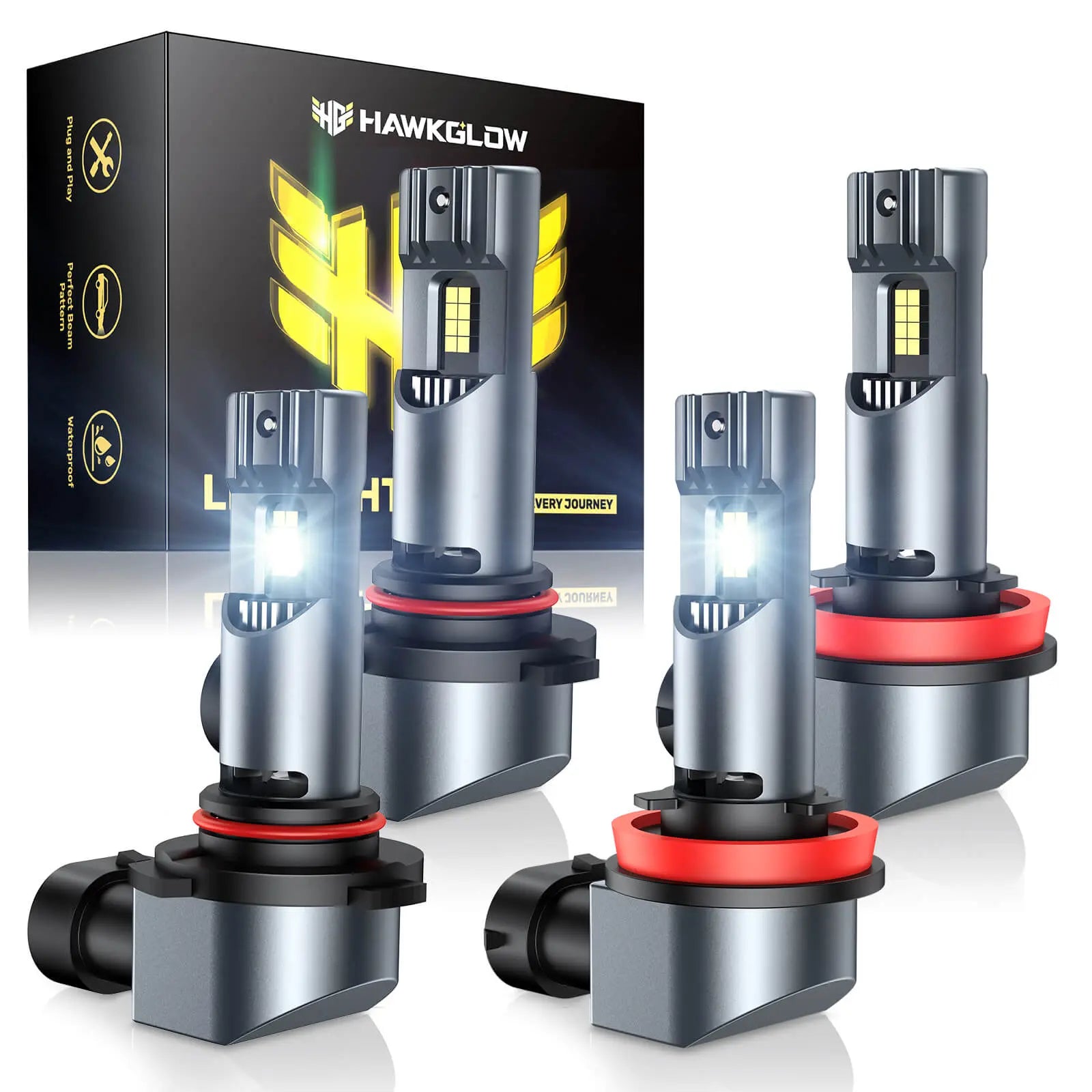 Hawkglow LED Headlight Bulbs installs with 100% success, thanks to its identical 0.66-inch base and 1:1 body design to halogen bulbs. Plug and play, requiring no external drivers or wires,5 MINS quick installation.