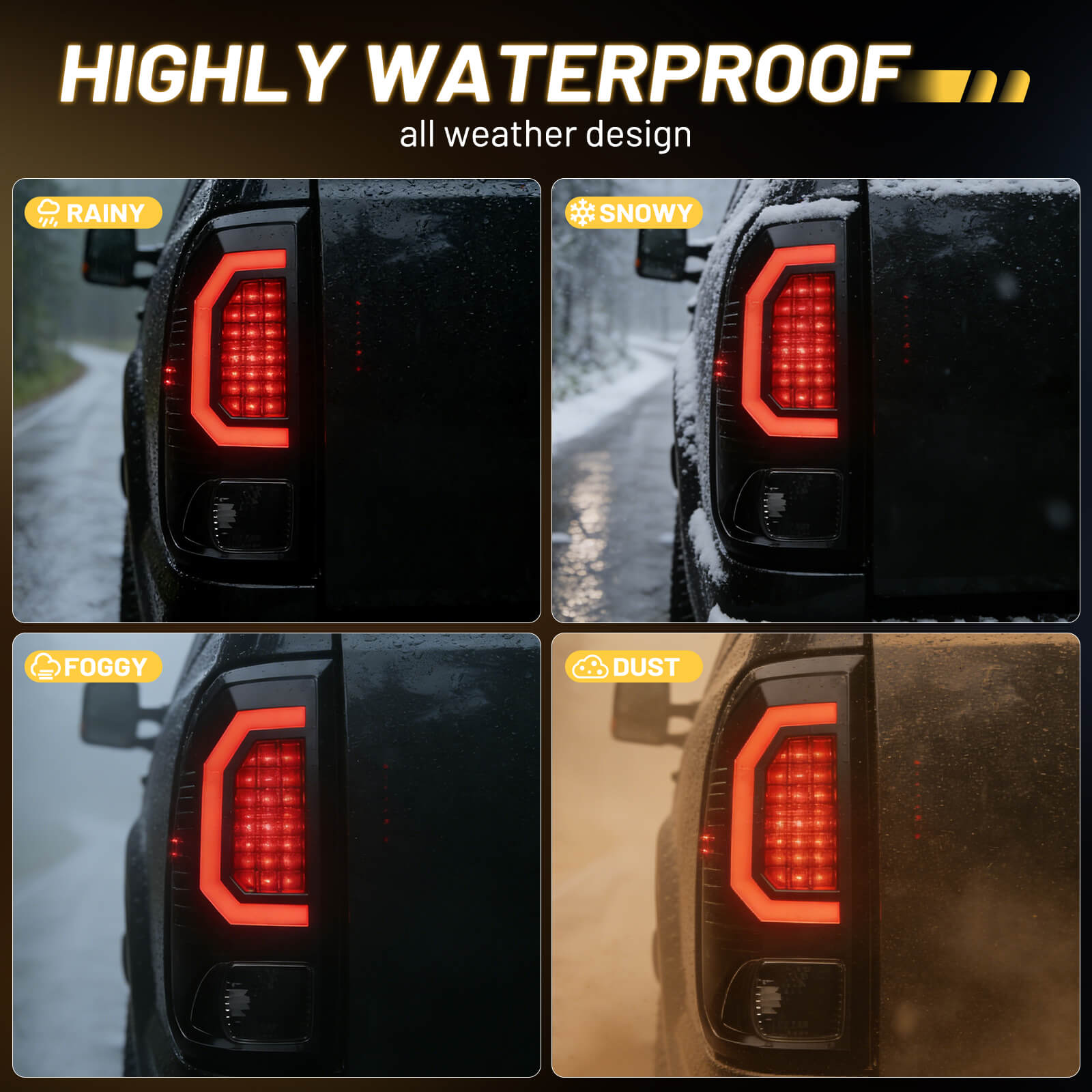 Designed with fully sealed silicone gaskets and one-way ventilation vents, this structure effectively prevents moisture ingress and eliminates internal condensation. No more worries about corrosion, short circuits, or light failures in rain, snow, or car washes, ensuring reliability in all weather conditions for years to come.