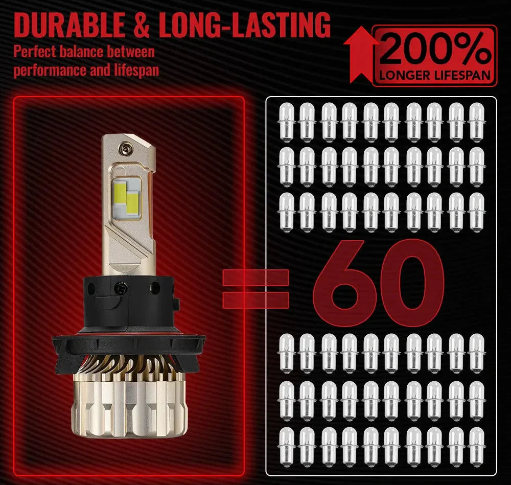Dual-Function Brilliance:Hawkglow's H13/9008 LED bulbs are engineered as dual-function lights, serving both as high and low beams. Seamlessly switch between modes, adapting to different driving conditions.