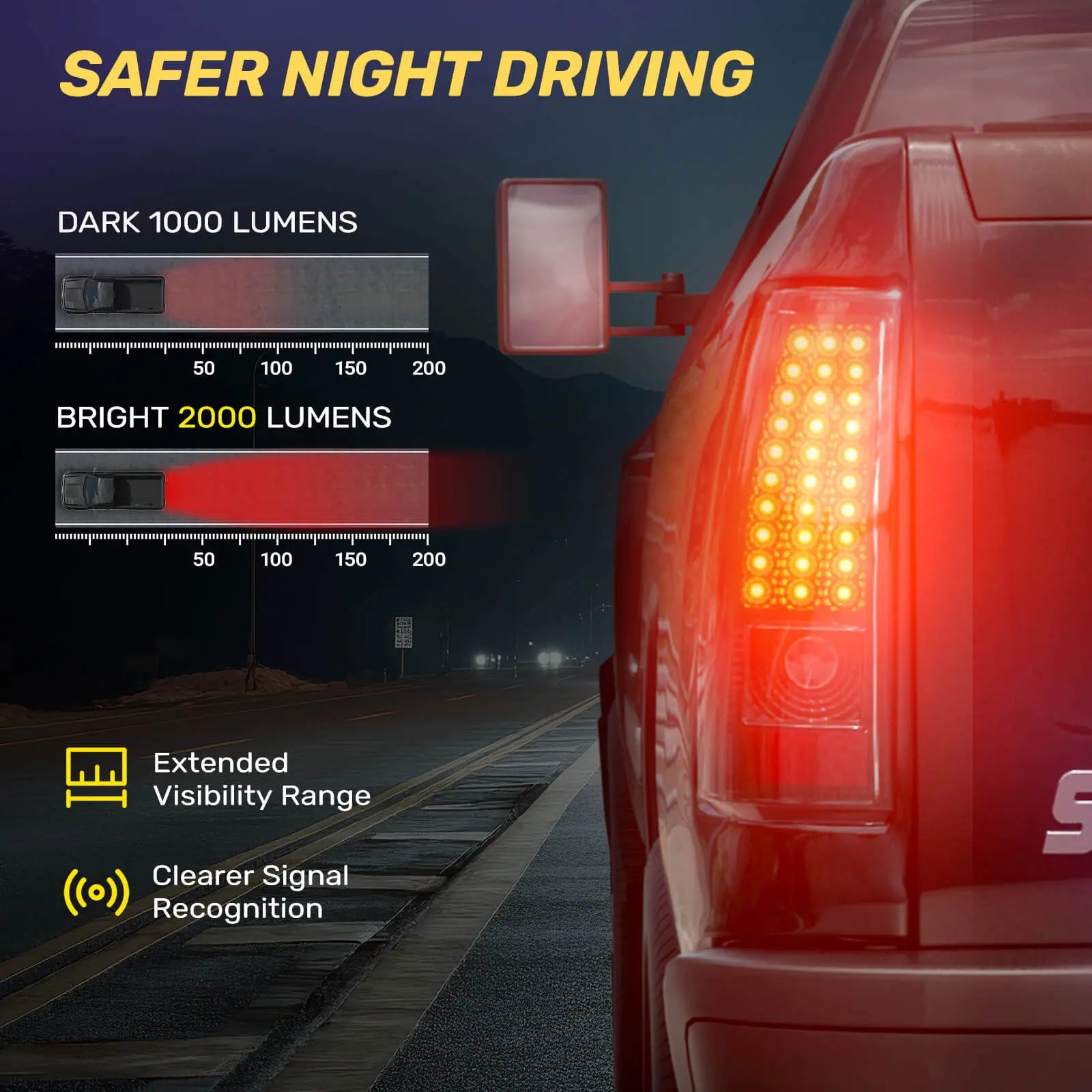 Hawkglow LED tail lights feature a full LED chip panel that delivers up to 2,000 lumens of crisp 5200K light—300% brighter than stock halogen lights. It improves your rear visibility, ensuring faster signal response in low-light or harsh weather.