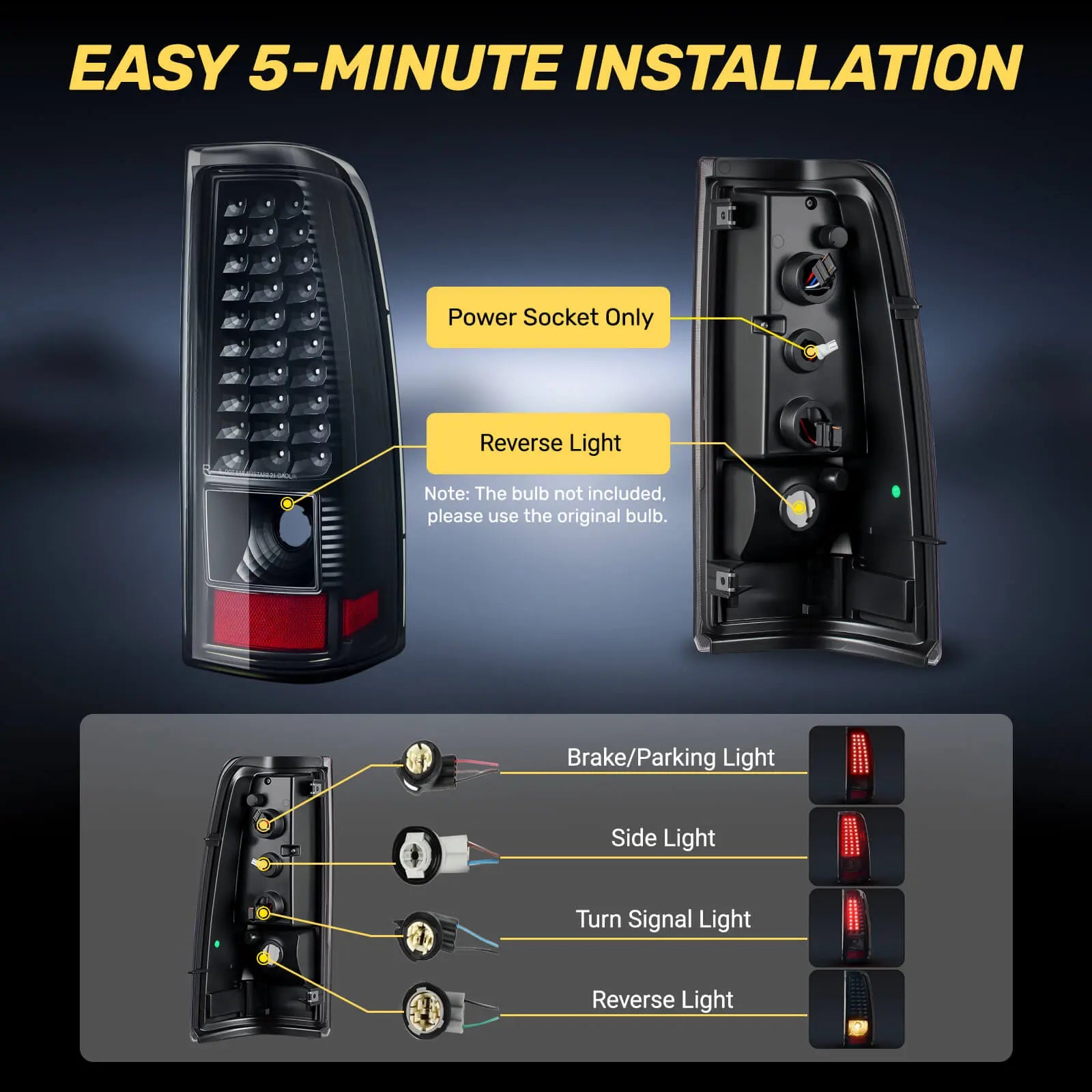 The smoked tail lights directly connect to your factory wiring harness—no splicing or drilling needed. The fully integrated LED design eliminates the need for stock bulbs. Just follow the included instructions and complete the installation in minutes.