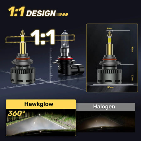 RD09 Bullet 9005/9006 130W 360°Full Illumination LED Headlight Bulbs 900% Brighter Than Halogen and 60000Hrs Lifespan | Hawkglow