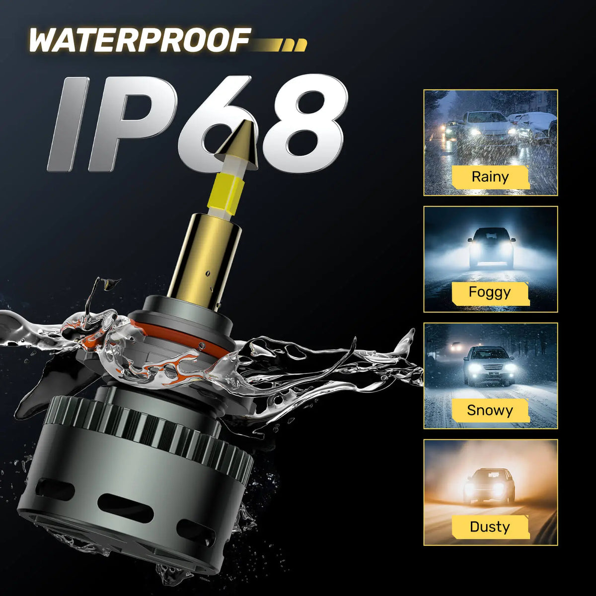 The 360° led headlight bulb is designed to perform in a variety of environments, featuring high power 130W, 40,000 Lumen output and an adaptive design to handle rain, snow, and other harsh weather conditions. Enjoy the reliability and brightness of our automotive led headlight bulbs even in the harshest conditions.