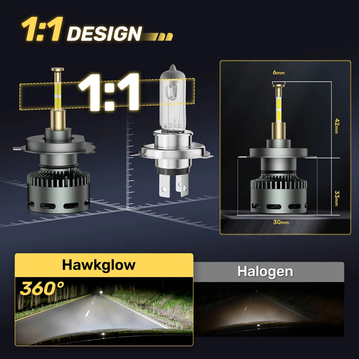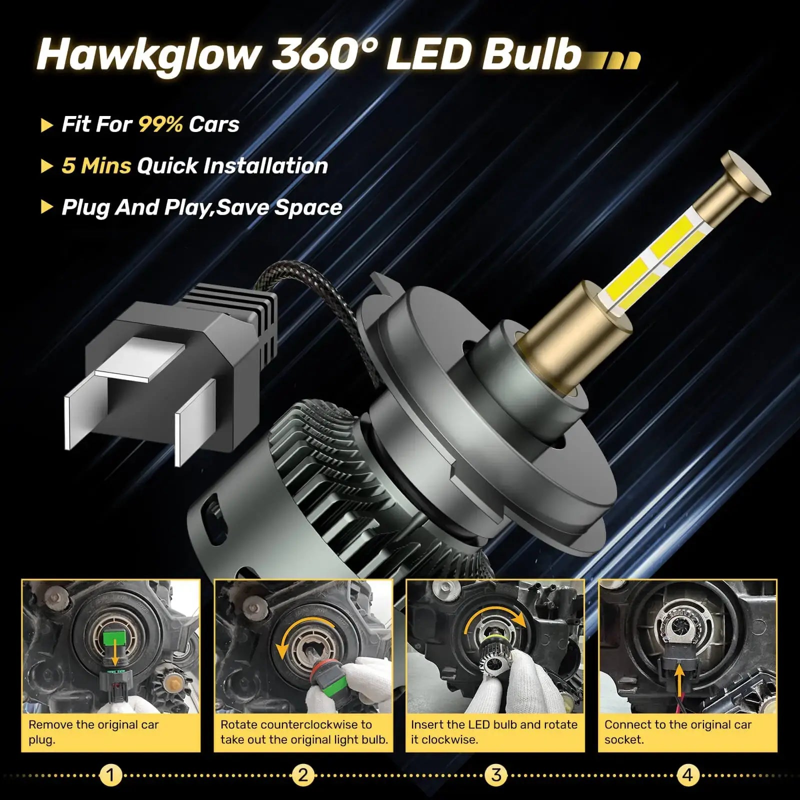 Say goodbye to complicated installations! The H4/9003/HB2 LED bulb 1:1 design with original halogen lamp, requiring no additional adapters. Simply plug and play, and enjoy enhanced lighting performance in just 5 minutes.