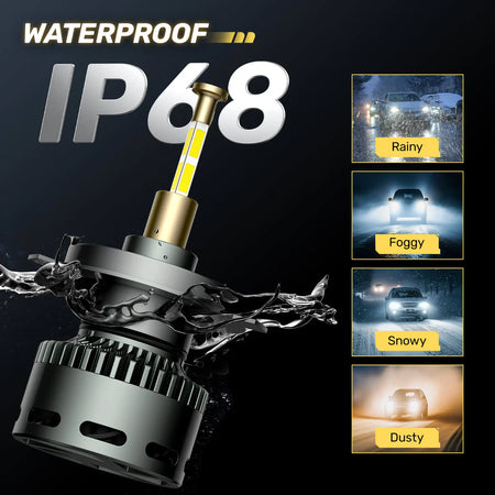 The 360° led headlight bulb is designed to perform in a variety of environments, featuring high power 130W, 40000 Lumen output and an adaptive design to handle rain, snow, and other harsh weather conditions. Enjoy the reliability and brightness of our automotive led headlight bulbs even in the harshest conditions.