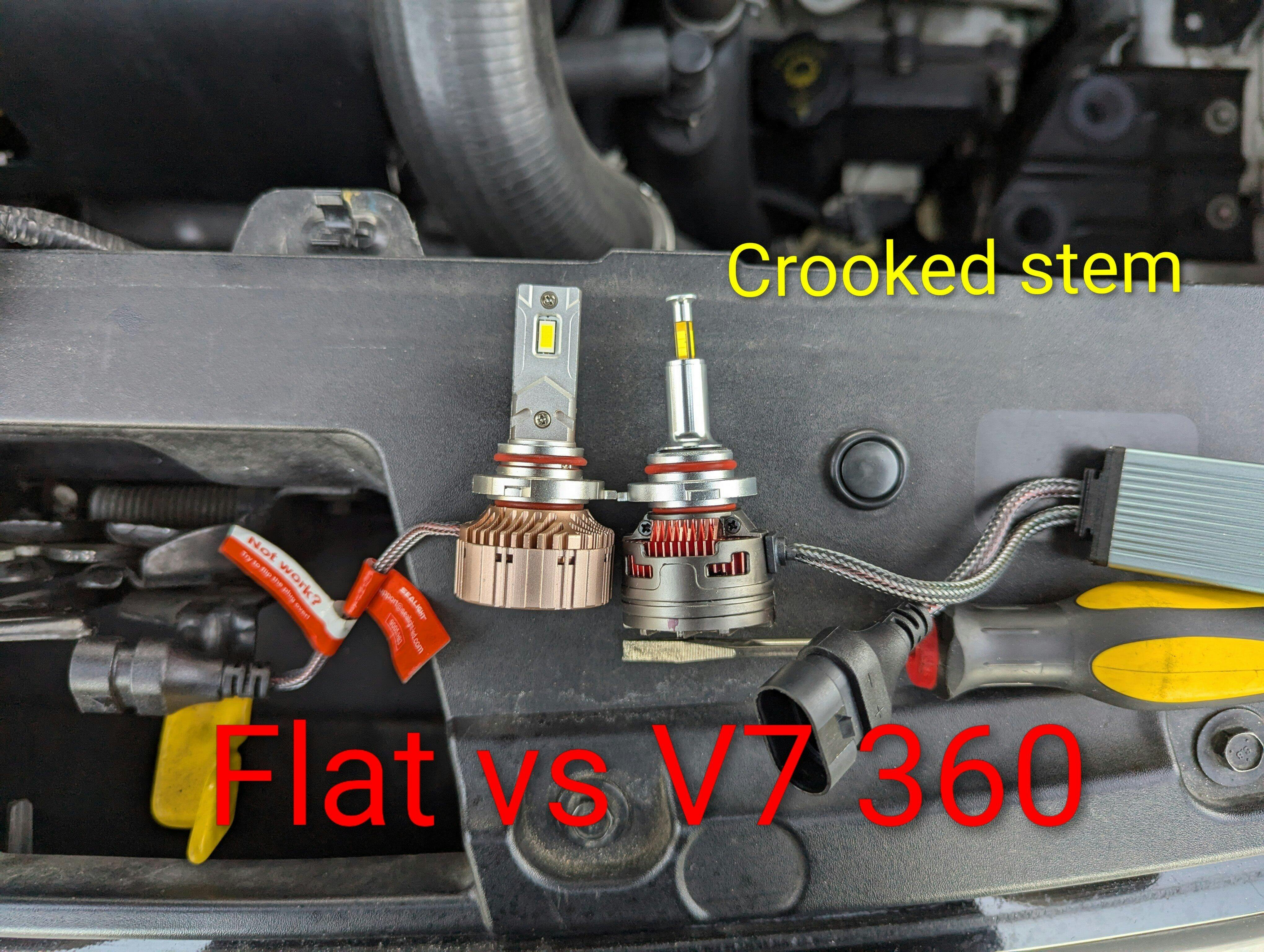 I like the LED bulbs that have the external voltage regulator, like these 360 bulbs have. In my opinion, they send cleaner voltage to the LEDs for a longer life. Bulbs that do not have these, you will get bulb dimming (when turning on the car or with heavy battery usage). So the 360 V7 gets a plus for that. Some people don't like it because it's an extra piece, but I have no issues stuffing it under the dust cap of the headlights.