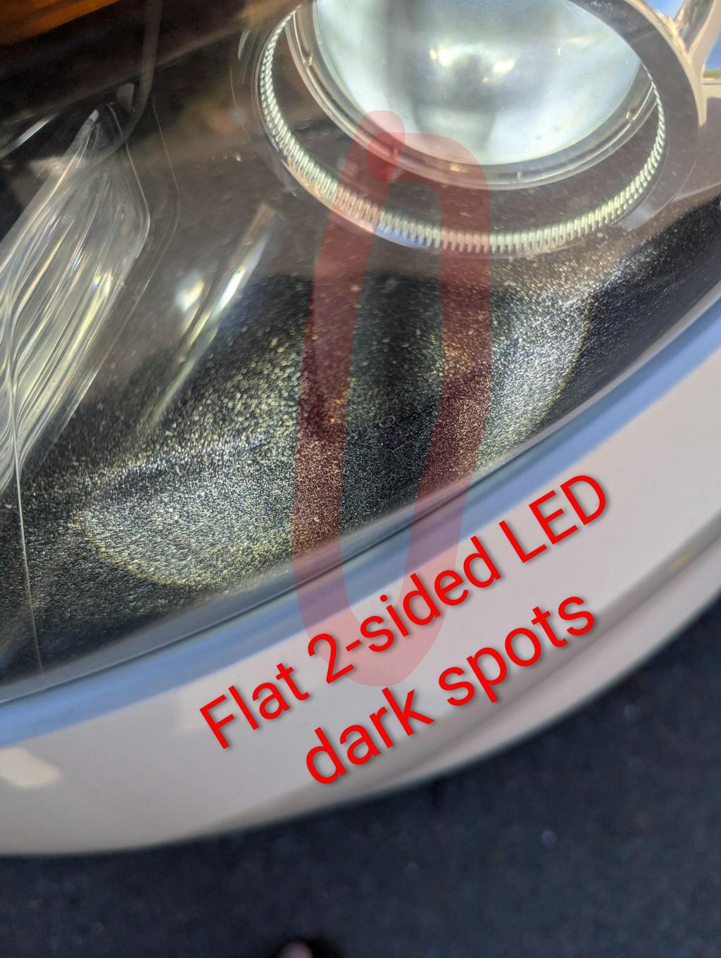 When you replace a halogen bulb with an LED bulb, it should work the same way as a halogen bulb. Place the LED bulb with the center tab facing up and the LED chip pointing horizontally left and right. If the bulb is installed tilted or upside down, you will get a strange and really bad beam pattern.