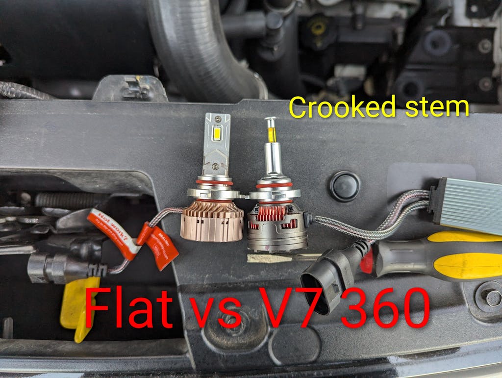 I like the LED bulbs that have the external voltage regulator, like these 360 bulbs have. In my opinion, they send cleaner voltage to the LEDs for a longer life. Bulbs that do not have these, you will get bulb dimming (when turning on the car or with heavy battery usage). So the 360 V7 gets a plus for that. Some people don't like it because it's an extra piece, but I have no issues stuffing it under the dust cap of the headlights.